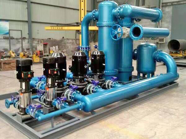 换热器可以采用板式换热器、全焊接板式换热器等,其中换热器可以设置2台,每台承担70%的负荷;换热器压力降:板式一次侧不大于50ka,二次侧不大于70kpa,传热系数大于6000W/m2,水泵:循环水泵设置1台或2台(一用一备),流量大于200m3/h设3台循环水泵(两用一备);机组设置1台或2台(一用一备)补水泵。
