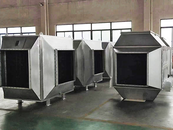 在钢结构的固定框架中,将每片传热板成90°逐一重合而成。烟气从水平方向通过波纹板,空气从从垂直方向通过波纹板。